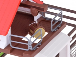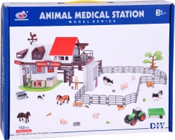 A készlet tartalmaz egy állatorvosi állomást 34 x 24 x 15 cm méretben, amely tartós műanyagból készült és működő ajtókkal és ablakokkal van felszerelve. Itt a gyerekek szimulálhatják az állatok gondozását és biztosíthatják a szükséges orvosi kezelést.