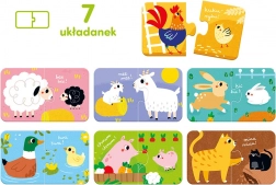 Üdvözöljük a farm állatainak világában! Állatos farmfelismerő puzzle interaktív módon segíti a gyermekeket a kis- és nagyállatok megismerésében hét színes puzzle segítségével.