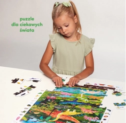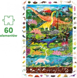 A Felfedező puzzle Dinoszauruszok 60 darabot tartalmaz, amelyek egy lenyűgöző képet alkotnak a dinoszauruszokkal. Az illusztrációt egy részletekkel teli keret veszi körül, amelyet a gyerekek élvezettel fedeznek fel és hasonlítanak össze a képpel. A csomag tartalmaz egy oktatási posztert is, amelyen a gyerekek érdekes dolgokat találnak a dinoszauruszok világáról.