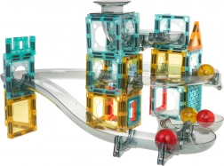 Mágneses építőkészlet golyópályával és zenével, 118 darab