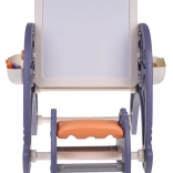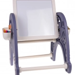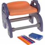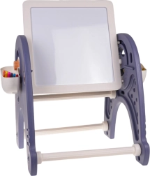 4 az 1-ben készlet: tábla, asztal, építőkocka-alátét és szék 3 éves kortól. A készlet a legmagasabb minőségű műanyagból készült, nincsenek éles szélei, és stabil. A műanyag lábakon elhelyezett tábla tetszőleges szögbe dönthető és forgatható. Az egyik oldala rajztábla, a másik oldala építőkocka-alátét. A táblát és az alátétet függőleges vagy vízszintes helyzetben is lehet használni. Vízszintes helyzetben a készlet használható rajzasztalként, tanuláshoz vagy étkezéshez, illetve építőkocka-alátétként. A készlet tartalmaz egy szivacsot és 6 filctollat. A készlet oldalain két kosár található a rajzeszközöknek. A készlet fejleszti a gyermekek képzelőerejét és kognitív képességeit. .. A készlet funkciói: . - 3 éves kortól ajánlott, .- biztonságos anyagokból készült, éles szélek nélkül, .- sokféle játék lehetősége: .* rajzasztal, .* asztal tanuláshoz vagy játékhoz, .* állvány építőkockákhoz, .* rajztábla, .- stabil szék, .- fejleszti a gyermekek képzelőerejét és kognitív képességeit. . |