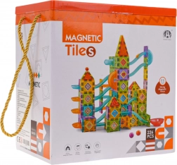 Ez az átfogó építőkészlet mágneses lapocskákat és golyópálya-elemeket kombinál, így a 3 éves kortól ajánlott játék során a gyerekek tornyokat, várakat és egyedi pályákat építhetnek a színes golyóknak. Az elemek minőségi, sima műanyagból készültek élénk színekben, a mágneses élek könnyen és erősen kapcsolódnak, így a szerkezetek a magasabb építményeknél is jól tartanak.