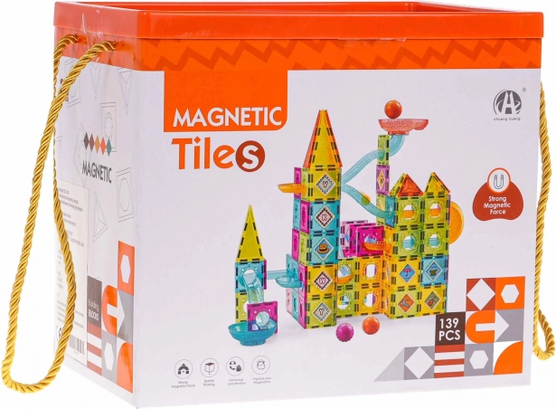 Fedezze fel a mágneses építők kreatív világát 3 éves kortól. Ez a gazdag készlet 139 darabbal lehetővé teszi stabil golyópálya megépítését többféle változatban. A minőségi, sima műanyagból készült elemek könnyen kapcsolódnak a erős mágneseknek köszönhetően, a csomag része továbbá egy képes útmutató és praktikus hordozható doboz formaválogató tetővel a rendszerezett tároláshoz.