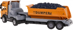 Fedezd fel az építkezés izgalmát ezzel a valósághű, 1:24 méretarányú billenőplatós teherautóval 3 éves kortól. Rendelkezik fényhatásokkal, menet-, duda- és tolatóhangokkal, levehető és billenthető pótkocsival, valamint gumírozott kerekekkel a jobb tapadásért. A tartós fém fülke és a minőségi műanyag hosszú élettartamot és biztonságos játékot biztosít.