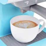 A felső részen zárható víztartály található, a mellékelt kivehető kar könnyen a gépbe csúsztatható, és a helyes elfordítás elindítja a csésze „megtöltését”. A mozgatható gőzkar lehetővé teszi a tej „felhabosítását” latte-hoz vagy cappuccinóhoz, így a kávézós játék teljesen új dimenziót kap.
