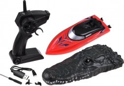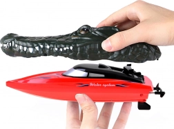 Távirányítós krokodil hajó egy motoros vízi jármű, amely tiszteletet parancsol. A 2 az 1-ben játék lehetőséget biztosít a hajóra rögzíthető krokodil fejtakaró használatára. A krokodil fej nagyon élethűen lett megformálva. Éles és sima fogak, barna szemek és pikkelyekkel borított sötétzöld bőr emlékeztet az igazi krokodilra. Ezzel valóban meg tud valakit ijeszteni.