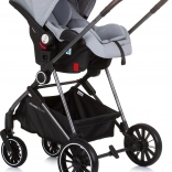 Állítható fogantyú az egyszerű hordozáshoz, ringató talprész a baba megnyugtatására és levehető, összehajtható kupola a napvédelemhez.