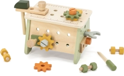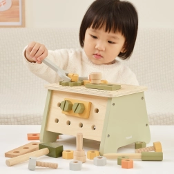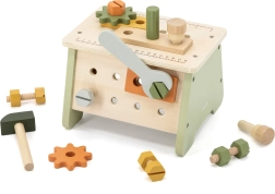 Fedezze fel az okos játékot, amely mini műhelyt és 2 az 1-ben szerszámosládát egyesít. A gyerekek megismerkednek a szerszámokkal, és gyakorolhatják a csavarozást, a kalapácsütéseket és a pontos illesztést. Az asztal megfordításával kompakt doboz jön létre az összes elem könnyű tárolásához és szállításához.