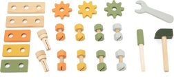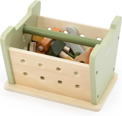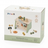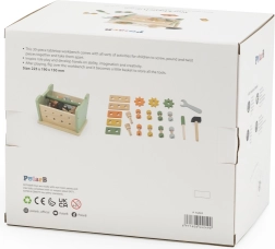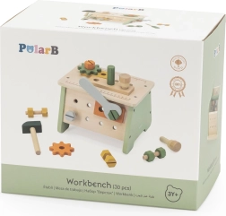 A Viga PolarB mini műhely 2 az 1-ben fa készlet minden kis barkácsolót megörvendeztet. 21 darabot tartalmaz, többek között kalapácsot, villáskulcsot, csavarhúzót, csavarokat és anyákat, csapokat és fogaskerekeket. A asztalka megfordítható, és praktikus szállító- és tárolódobozzá alakítható. A játék természetes módon fejleszti a finommotorikát, a kreativitást és a képzeletet.