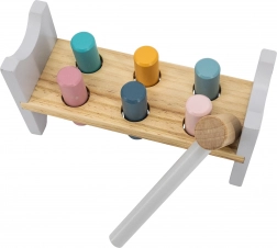 Színes ütögető kalapáccsal a motorika fejlesztésére. A gyerekek beüthetik a pálcikákat, majd a játékot megfordítva folytathatják a játékot.