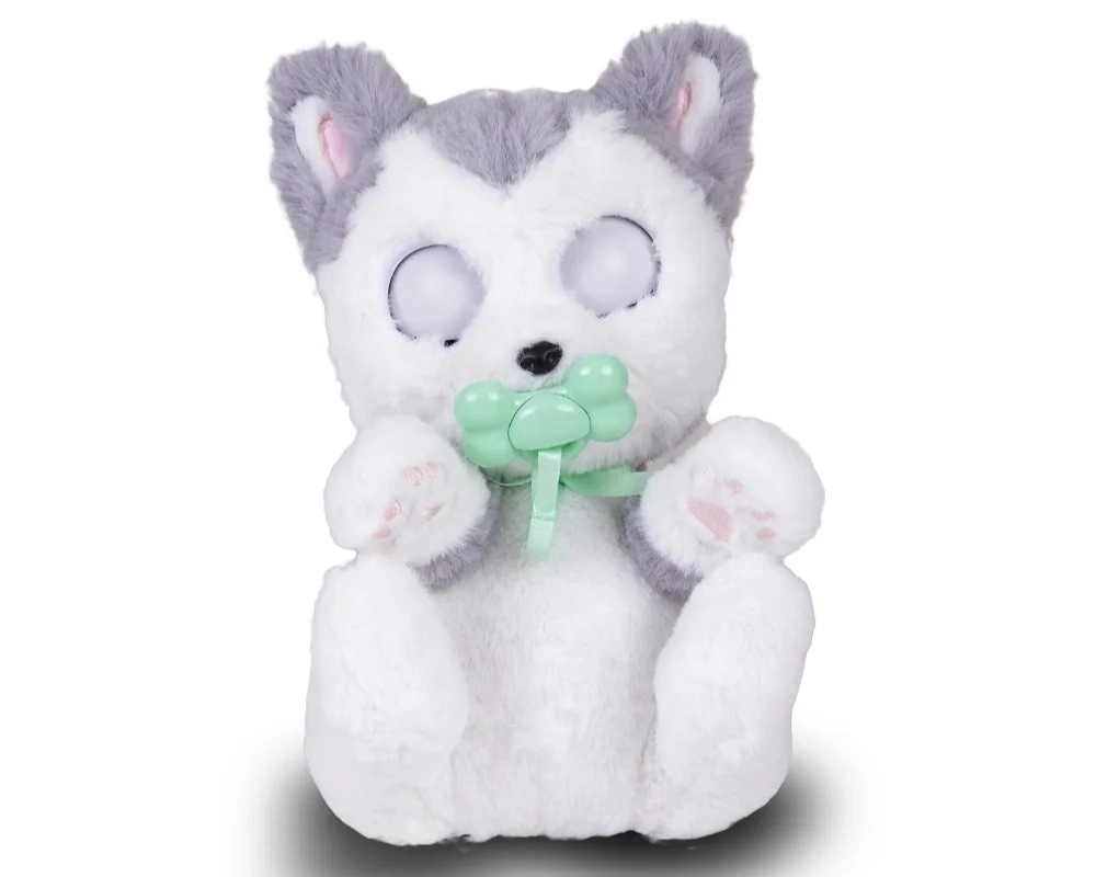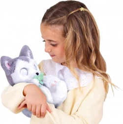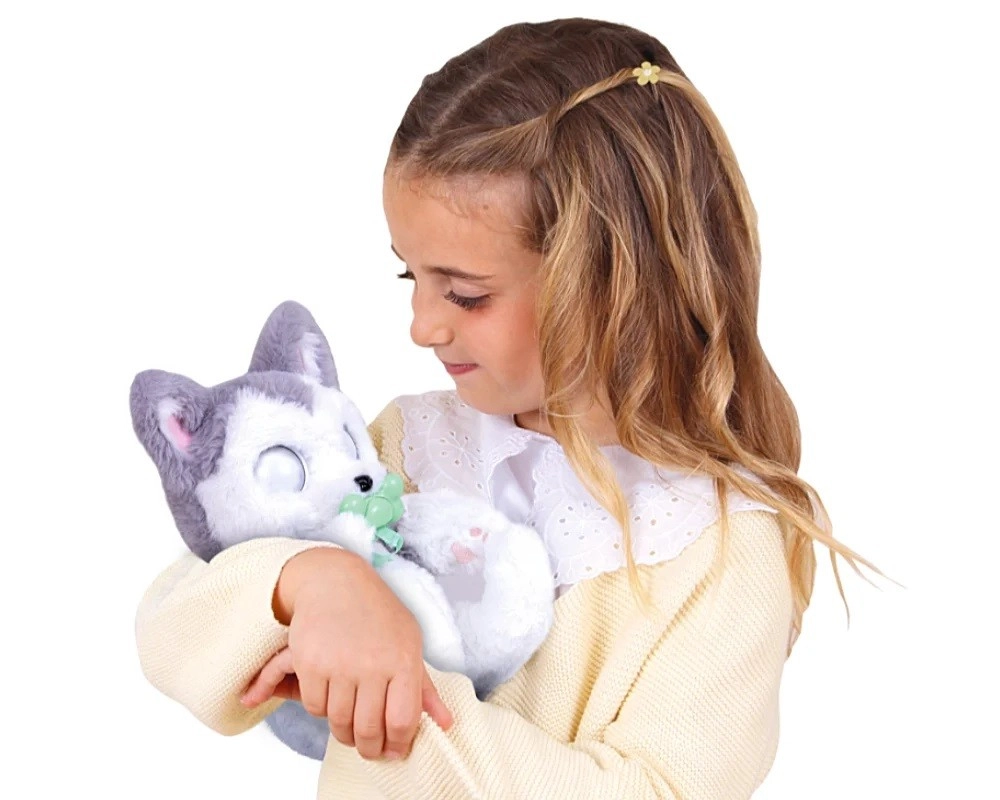 Merüljön el az interaktív játék világában ezzel a bájos plüss kutyussal Husky a Psytulaski kollekcióból. A kutyus reagál az érintésre és a mozgásra, valódi élményt nyújtva. Amint eltávolítja a cumit a szájából, a husky kinyitja a szemét és ugatni kezd. A cumi nemcsak játékra szolgál, hanem a kutyus altatására is, ami segít a gyerekeknek gondoskodni kedvenceikről és felelősségérzetüket fejleszteni.