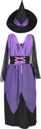A szett része az ikonikus hegyes kalap lila díszítéssel, amely teljessé teszi az összeállítást. A jelmez tökéletes Halloweenre, farsangra, angyali-ördögi mulatságokra, iskolai műsorokra és otthoni jelmezes játékokra is. Több méretben elérhető, így könnyű megtalálni a megfelelőt.