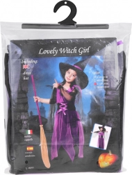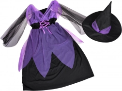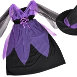 Elbűvölő gyerek boszorkány jelmez Halloweenre, farsangra és születésnapi bulikra. A szett része a lila-fekete ruha és a hegyes kalap. Rugalmas anyagának köszönhetően kényelmes, látványos tüllréteggel és fűzéssel. Ideális jelmezes játékhoz, iskolai fellépésekhez és kreatív szórakozáshoz. Kényelmes viselet, varázslatos megjelenés és könnyű fel- és levétel – öröm minden kis boszorkánynak.