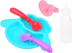 A cumisüveg, a cumi és a tányér evőeszközökkel támogatják az etetős játékot és a gondozási rutint. A bili és a törölköző jellegű kiegészítők teljessé teszik a „kis szülő” szerepének hiteles élményét.