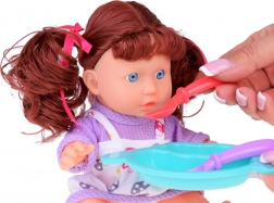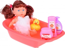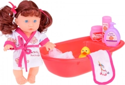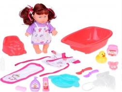 Szórakoztató készlet a gondoskodó szülő szerepjátékához egy interaktív, beszélő babával, amely kimondja: „anya” és „apa”, és valósághű hangokat ad ki. A készletben fürdőkád, bili, kiskacsa, „kozmetikumok”, fürdőköpeny, törölköző és etetőkészlet is található – minden, ami az elképzelőerő és az empátia fejlesztéséhez kell. A baba 23 cm magas, és 3× AG13 elemmel működik (a csomag tartalmazza).