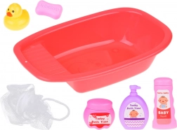 A kádat vízzel meg lehet tölteni, és élvezhető az érzékszervi játék a kiskacsával, szivaccsal és a „kozmetikumokkal”. A gyerekek gyakorolhatják a baba gondozását és az alapvető higiéniai szokásokat.