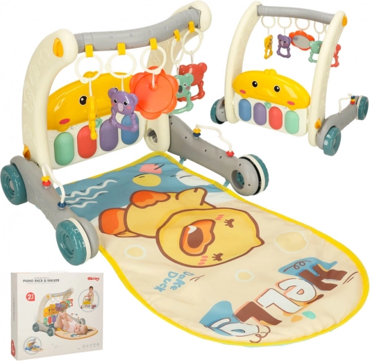 Multifunkciós 2 az 1-ben a legkisebbeknek: játszószőnyeg és stabil járássegítő zongorával, amely a gyermekkel együtt nő. A színes függő játékok ösztönzik a látást és a tapintást, a zongora 2 üzemmóddal és hangerőszabályzással fejleszti a hallást és az érzékelést. Járás tanulásakor biztos támaszt nyújt, és támogatja a motorikát, koordinációt és önbizalmat.