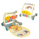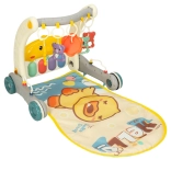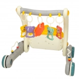 Ez az okos megoldás ötvözi a kényelmes játszószőnyeget a hason és háton fekvő babáknak, később pedig stabil járássegítővé alakul az első lépésekhez. A függő játékoknak és a zenélő zongorának köszönhetően a gyermek természetes módon fejleszti látását, tapintását, hallását és a kéz–szem koordinációt.