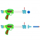 A 2 az 1-ben pisztoly akciódús, mégis biztonságos szórakozást nyújt a gyerekeknek. A kétféle lőszernek – hablövedékeknek és golyóknak – köszönhetően a játék könnyen alkalmazkodik bármely helyzethez. Az átlátszó csőben lévő spirálrugó látványos, és megmutatja az egyszerű, elemek nélküli mechanikus lövési elvet.
