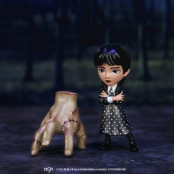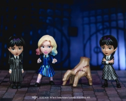 A figurák megörökítik a sorozat kedvelt karaktereit, mint például a Thing kéz és Wednesday különböző ruhákban.