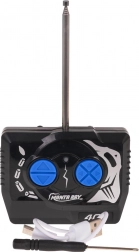 Irányítsd a haladat könnyedén és intuitívan egy fekete és kék távirányítóval, amely antennával és két világoskék gombbal van ellátva.