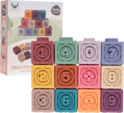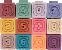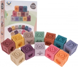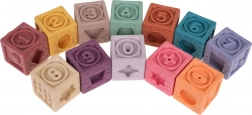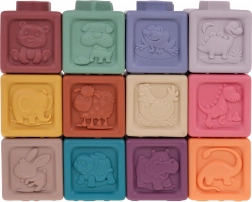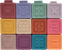 A készlet 12 különböző színű szilikon kockát tartalmaz, amelyek vizuális stimulációt és kreativitást ösztönöznek a gyerekeknél.