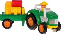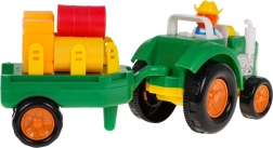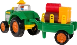 Ez a játék biztonságos, magas minőségű anyagokból készült, és úgy tervezték, hogy élénk színeivel ragadja meg a gyerekek figyelmét. A levehető pótkocsi további szórakozást és farmmunkák szimulációját biztosítja.