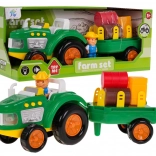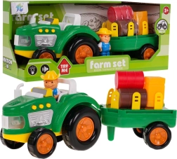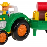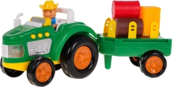 Ébreszd fel a gyerekek képzeletét ezzel a színes, interaktív traktorral levehető pótkocsival. Ez a traktor felszerelt hanghatásokkal, például az indítás, a gép működésének és a kürtnek a hangjaival, valamint fényhatásokkal a villogó első lámpák formájában. A készlet tartalmaz egy gazdafigurát és különféle szalma bálákat és kockákat a még jobb farmhangulatért.