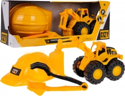 A készlet része egy sisak, gereblye és lapát is, ami teljes felszerelést biztosít a kis építőknek.