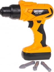 Realisztikus fúró, amely csavaroz és kicsavaroz, hangokat ad ki, cserélhető bitekkel (lapos, kereszt, fúrószár) és levehető „akkumulátorral” rendelkezik. Tápellátás: 2× AA 1,5 V (nem tartozék).