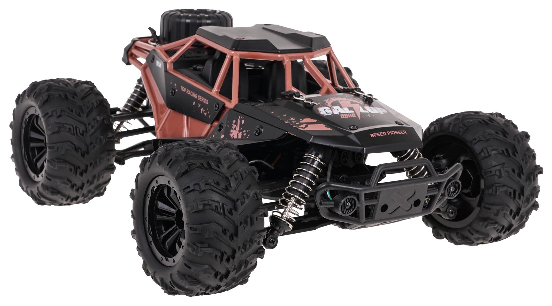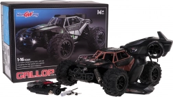 A GALLOP egy masszív terepes RC autó, amely beltéri és kültéri szórakozáshoz készült. A fém karosszéria és az ütközésálló szerkezet növeli a modell élettartamát, míg a független rugós felfüggesztés és a nagy kerekek megbirkóznak az egyenetlenségekkel, kövekkel és akadályokkal. A LED lámpáknak köszönhetően sötétedés után is folytathatja a vezetést.