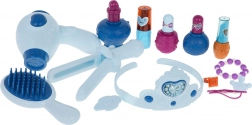 - fésülködőasztal, kisszék, hajszárító, hajkefe, hajvasaló, 2× körömlakk, 2× rúzs, karkötő, 2× gyűrű, korona, parfüm (dekoratív), 2× hajcsat, dekoratív matricák