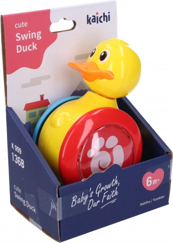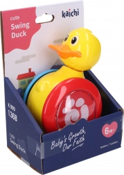 Színes kacsa a kerekeken felkelti a gyerekek figyelmét a ringató mozgással és a csörgő hangokkal a kis golyókkal.