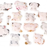 Fedezd fel a fürdés örömét a bájos állatkákkal, amelyek vízbe merítve színt váltanak. A gyerekek saját történeteket alkothatnak, a matricákat a nedves csempére ragaszthatják, miközben fejlődik a finommotorika, a színek és formák felismerése.