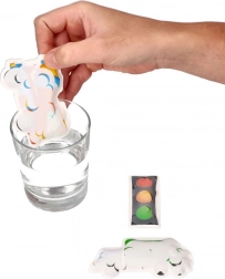 A matricák vízzel érintkezve színt váltanak – a gyerekeket azonnali vizuális hatás ragadja magával, és szívesen visszatérnek hozzájuk fürdés közben.