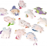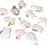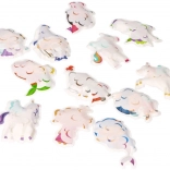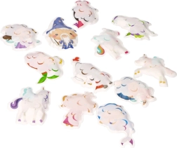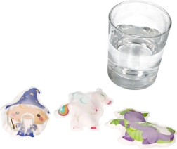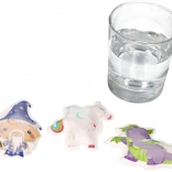 Habmatricák misztikus lények motívumaival, amelyek vízbe merítve színt váltanak, és könnyen megtapadnak a nedves csempén vagy a kádban. Támogatják a kreatív játékot és a finommotorika fejlődését.