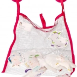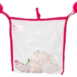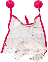 Légáteresztő, 23 × 27 cm-es háló erős tapadókorongokkal, amely rendszerezetten a helyén tartja a játékokat, lehetővé teszi a víz gyors lecsepegését és a higiénikus szárítást.