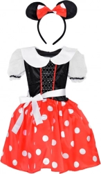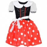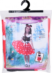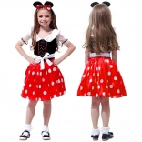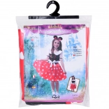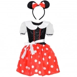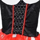 Elbűvölő egérke jelmez klasszikus piros színnel és világos pöttyökkel, elegáns fekete felsőrésszel. A felsőrész pufos ujjacskáit és fényes részleteitől az egész ruha ünnepi hangulatot kap, míg a bélelt szoknya szép formát tart a tökéletes „wow” hatásért minden farsangon.