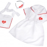 A fehér ruha piros szegélyekkel, a szívecske kereszttel és a kötény klasszikus nővér megjelenést ad, amit a gyerekek imádnak.