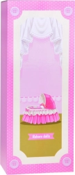 - Gazdag tartozékkészlet – ruhácskák, fejpánt, pelenka, cumisüveg, mágneses cumi, bizonyítvány.