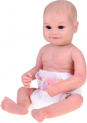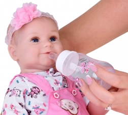 A 50 cm-es élethű baba puha teste, mozgatható végtagjai és gyönyörű mosolya minden gyermeket elbűvöl. A csomag gazdag kellékkészletet tartalmaz a gondoskodós szerepjátékhoz – cumisüveg, pelenka, mágneses cumi, születési bizonyítvány és bájos rózsaszín ruhácskák fejpánttal. A baba olyan, mint egy igazi kisbaba, és fejleszti a fantáziát és a empátiás készségeket is.