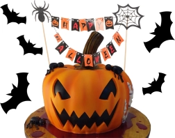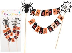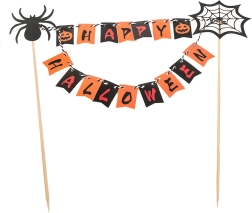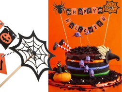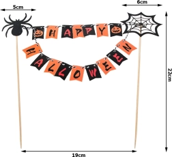 Halloween tortadekoráció felirattal, pókkal és pókhálóval, amely tökéletes választás a sötét hangulat megteremtéséhez egy partin vagy családi összejövetelen. Elég csak a tortába szúrni, és azonnal elvarázsolja az őszi desszertet a hátborzongató dekoráció világába.<1div>