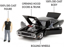 A csomag tartalmaz egy 7 cm magas Dominic Toretto figurát is, amely remek kiegészítője lehet vitrinnek vagy diorámának. Az 1:24 méretarányú modell hossza 21 cm, ideális ajándék gyűjtőknek és autórajongóknak.