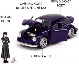 A hivatalosan licencelt, gyűjtőknek szánt Jada Toys készlet az ikonikus Volkswagen Beetle (1972) 1:24 méretarányú modelljét és egy Wednesday Addams figurát tartalmaz, beleértve a Kezet (Thing) is. Fém kivitel nyitható ajtókkal, motorháztetővel és csomagtérfedéllel, gumírozott kerekekkel és precíz részletekkel a kiállításhoz és a játékhoz egyaránt. Ideális a Wednesday sorozat rajongóinak és gyűjtőknek 8 éves kortól.