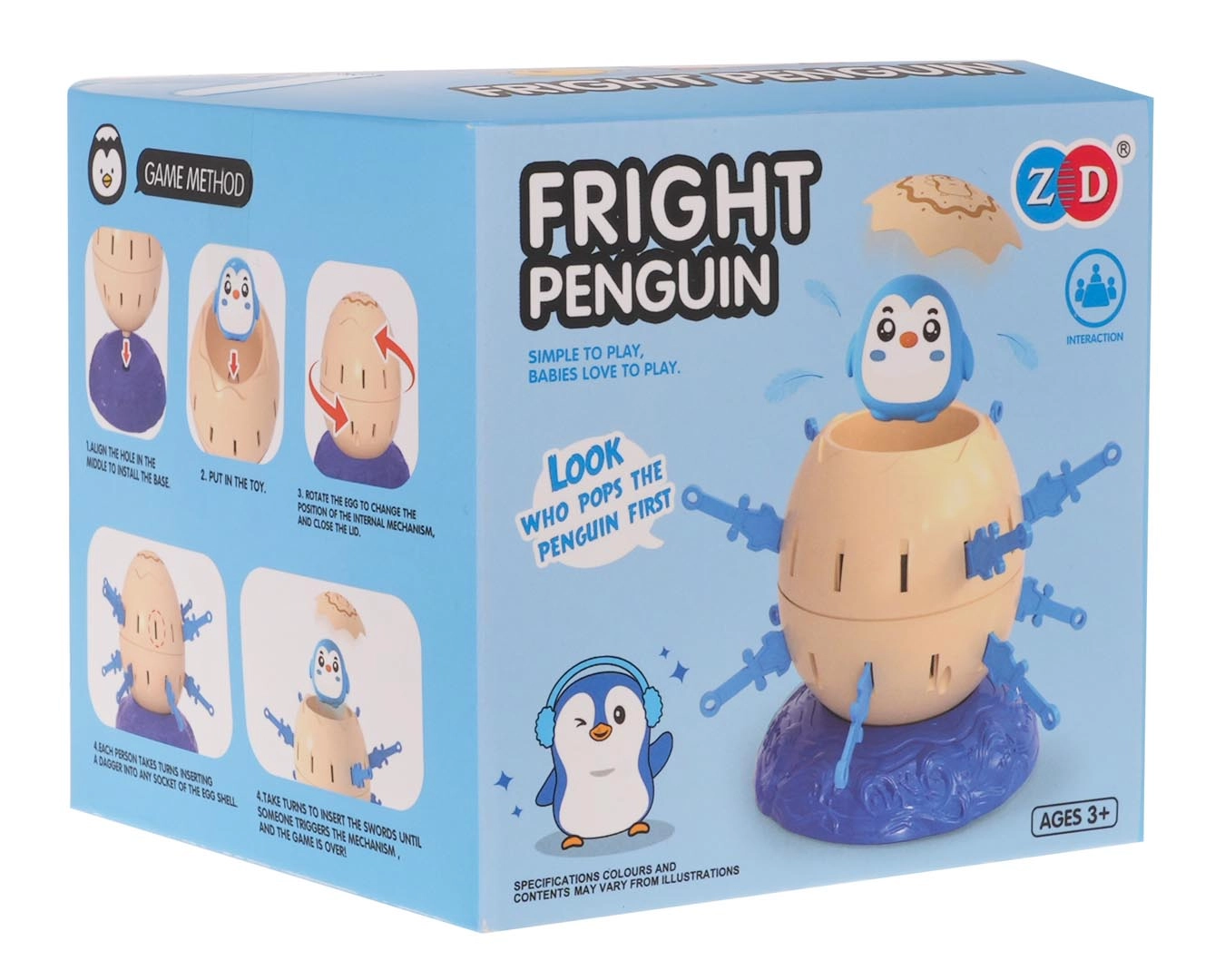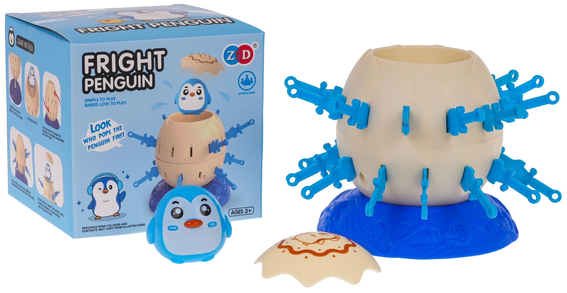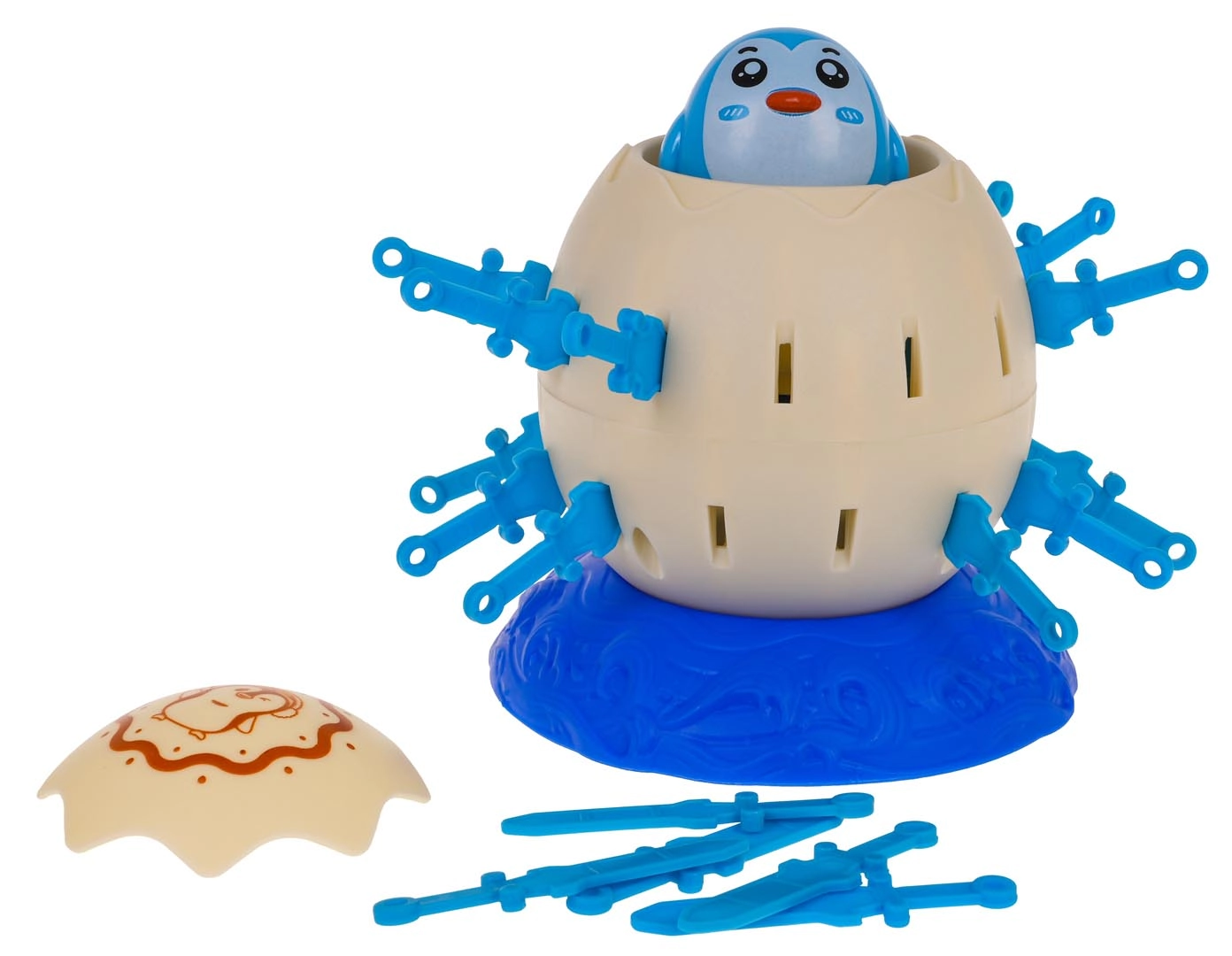 Helyezd a pingvines tojást a talapzatra, húzd fel a mechanizmust, majd a játékosok felváltva tolják be a műanyag kardokat a tojás nyílásaiba. Aki elsőként beszúrja az összes kardját anélkül, hogy a pingvin kiugrana, nyer. Egyszerű szabályok, gyors menetek és sok izgalom – ideális választás családi estékhez.