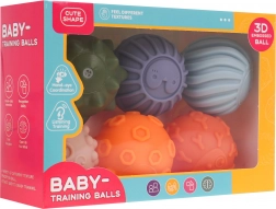 A készlet hat különböző színű és textúrájú labdát tartalmaz, 18 hónapos kortól ideális. A színes paletta és a változatos formák ösztönzik a kreatív játékot és fejlesztik a gyermekek érzékelését.