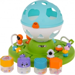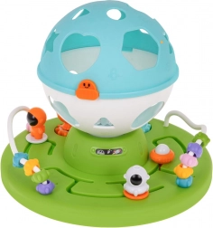 Ez az interaktív játék a formaválogatást, a fény- és hangeffekteket, valamint a motoros tevékenységeket egy szórakoztató egységbe ötvözi. A gyermek a megfelelő nyílásokba helyezi a formákat, forgatja a fogaskerekeket és felfedezi a labirintusokat, így természetes módon gyakorolja a kéz–szem koordinációt és a problémamegoldást.