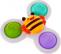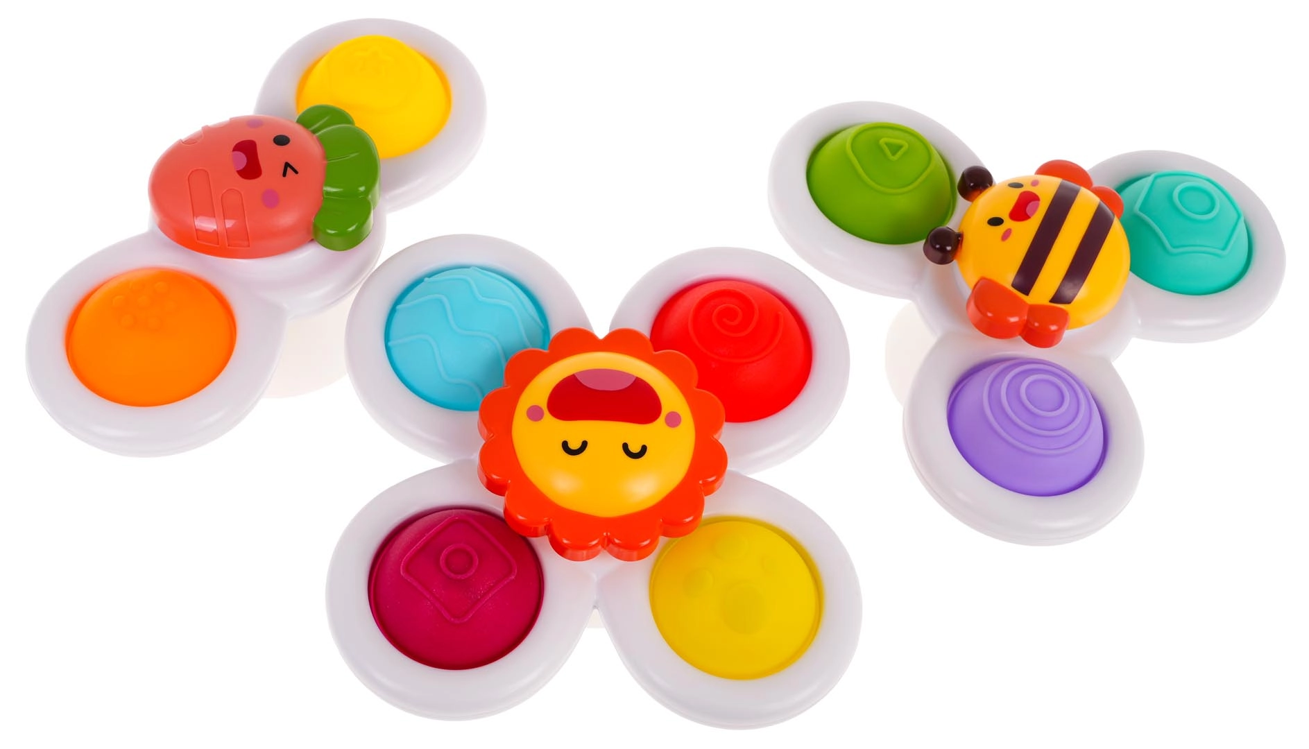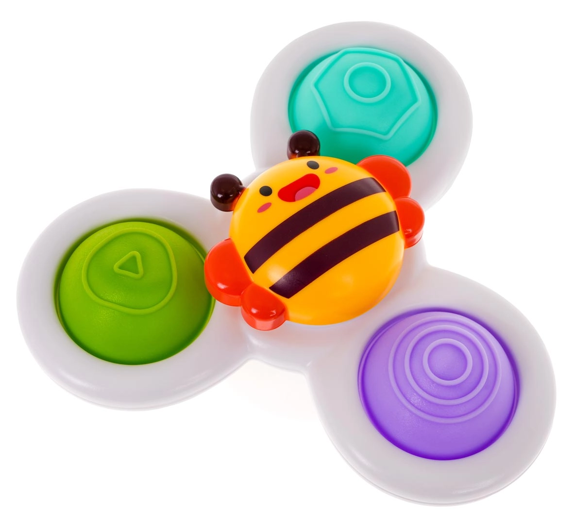 Három aranyos motívum – napocska, méhecske és répa – ötvözi a játékos dizájnt a gyermek fejlődését támogató praktikus funkciókkal. A hátoldali erős tapadókorong lehetővé teszi a játék rögzítését különféle sima felületekre, míg a tartós csapágyak hosszan tartó, sima pörgést biztosítanak. A vízálló kialakításnak köszönhetően a spinnerek fürdéshez is ideálisak.