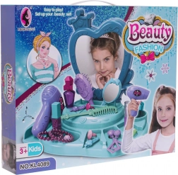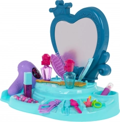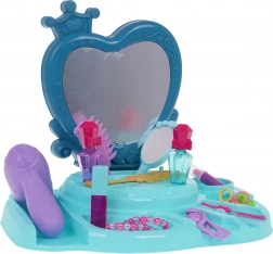 A készlet része a toaletasztal gyönyörű tükörrel, hajszárító, fésű, hajkefe és további kozmetikai kiegészítők, amelyek órákra szórakoztatnak.