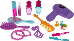 A gazdag kiegészítő készlet világos színekben, amely valós hajformázás és kozmetikai igények imitációja, lehetővé teszi a gyerekek számára, hogy kis fodrászok vagy sminkesek legyenek.
